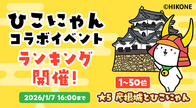 ひこにゃんが対象となるイベントランキングを期間限定で実施!ランキング上位を目指し、限定ひこにゃんをGETしよう!