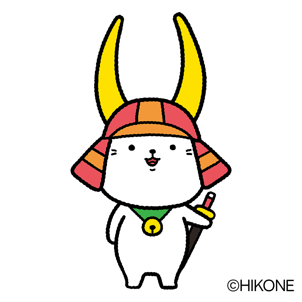 彦根藩井伊家二代当主である井伊直孝公をお寺の門前で手招きして雷雨から救ったと伝えられる"招き猫”と、井伊軍団のシンボルとも言える赤備え(戦国時代の軍団編成の一種で、あらゆる武具を朱塗りにした部隊編成のこと)の兜(かぶと)を合体させて生まれたキャラクター。